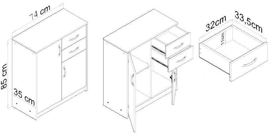 - dwie szuflady i półka z jednolitej płyty: wytrzymają nawet duży ciężar dokumentów czy ubrań,