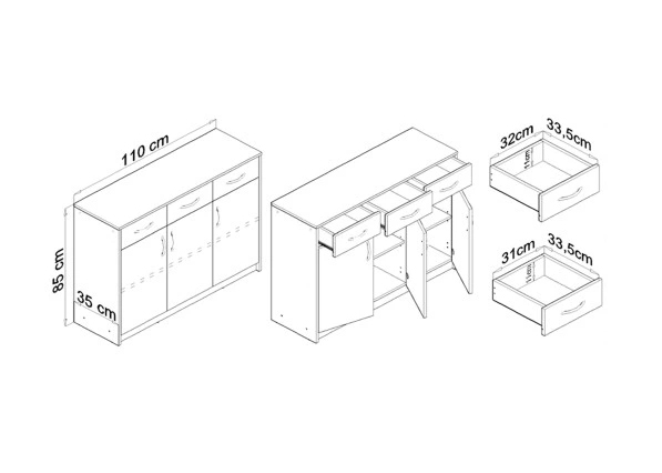 - Pojemna komoda do większych pomieszczeń,