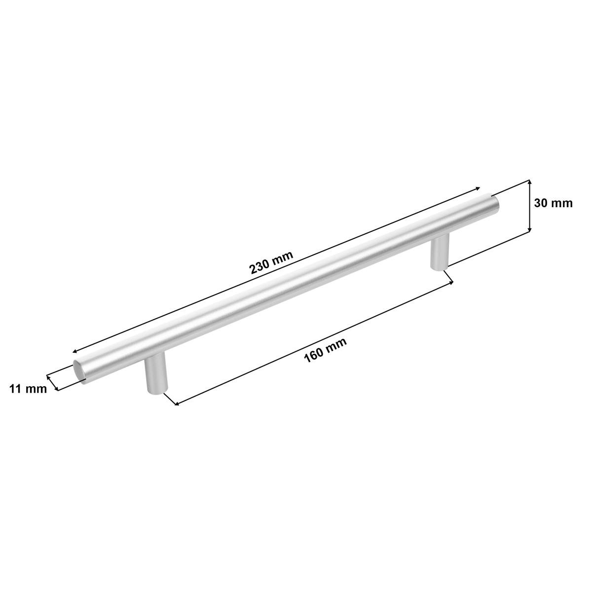 Uchwyt meblowy reling 160mm alu mat - wymiary