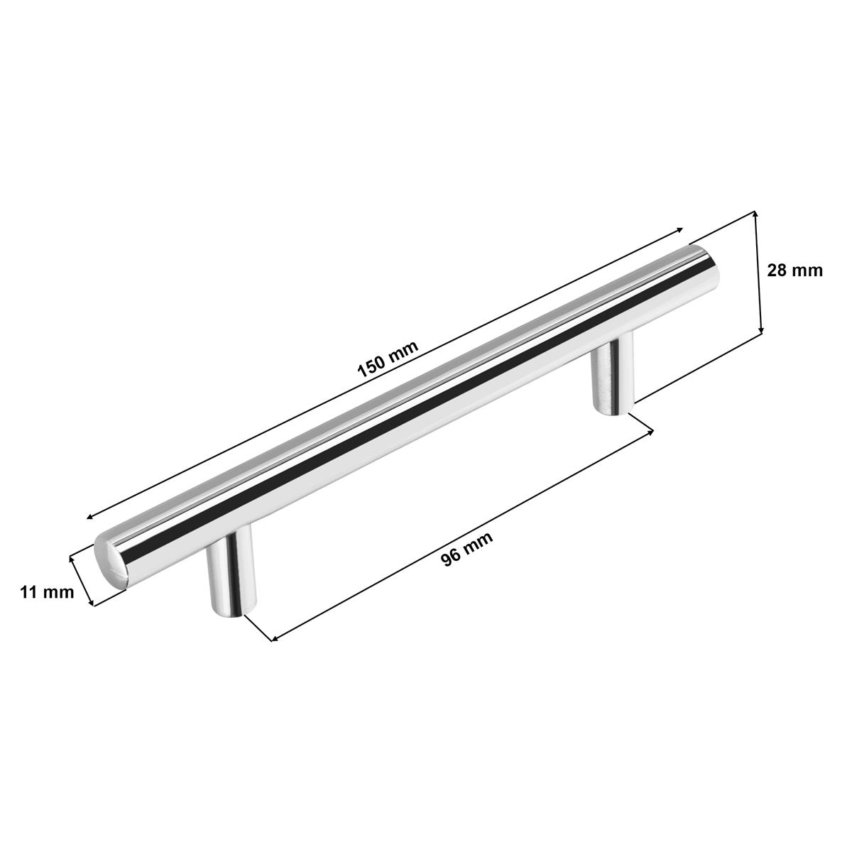 Uchwyt meblowy reling 96mm chrom połysk - wymiary