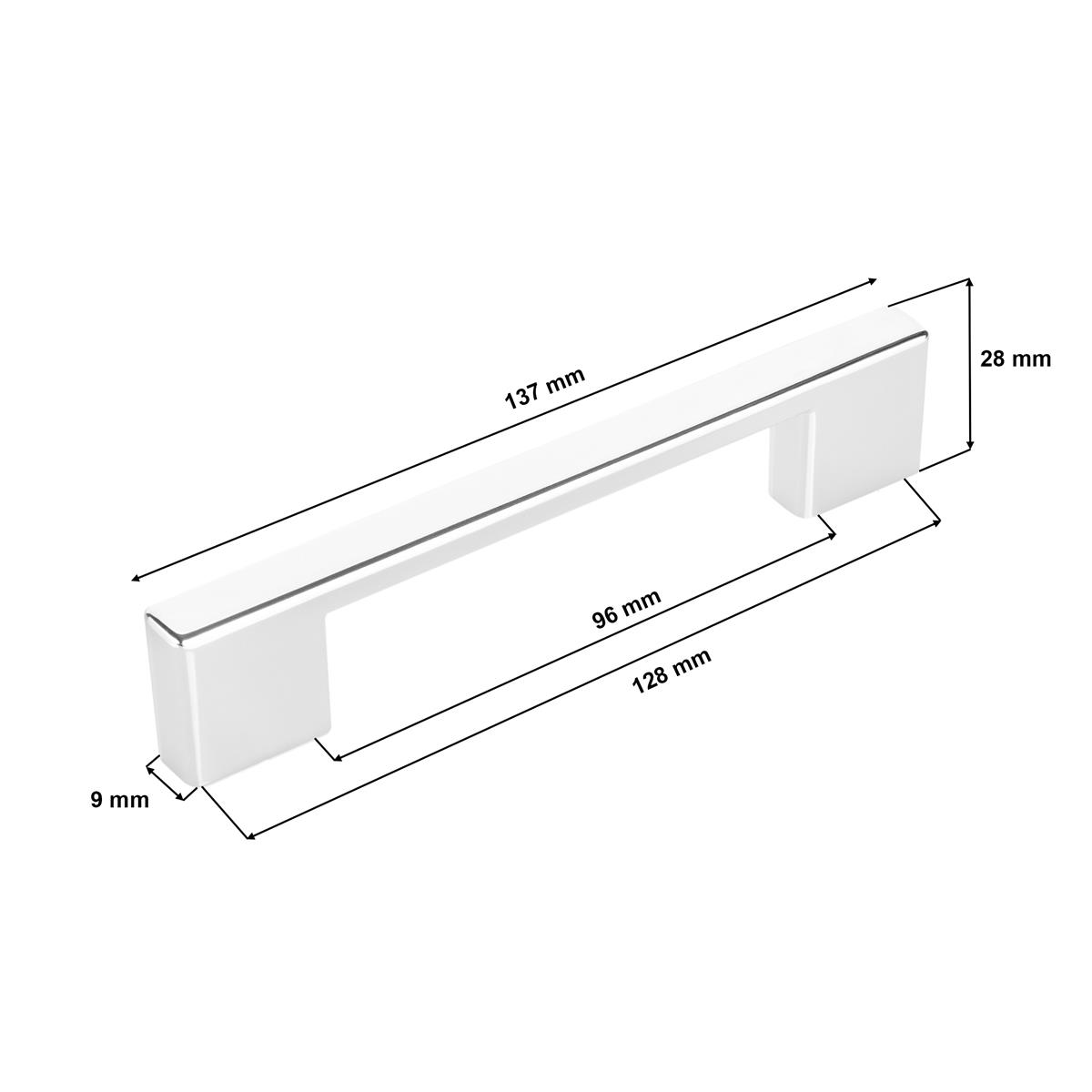 Uchwyt meblowy chrom połysk posiada otwory w o rozstawach 96 i 128 mm. To nowoczesny element dwupunktowy o srebrzystym połysku. Wykonany został z wysokiej jakości tworzywa sztucznego.